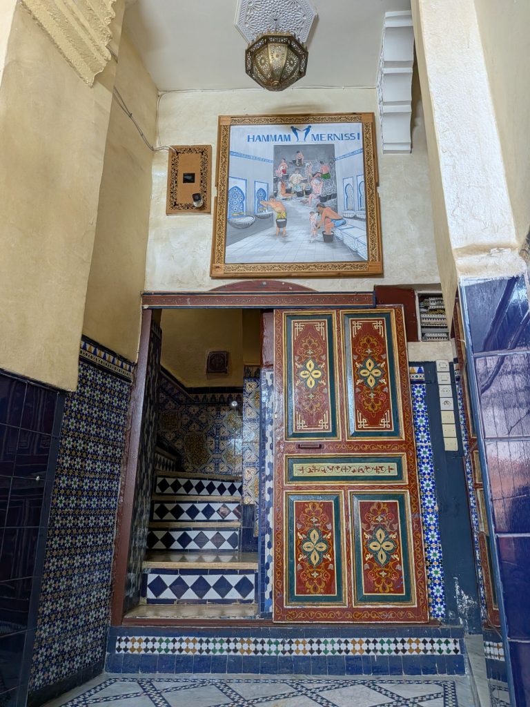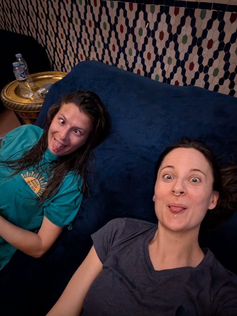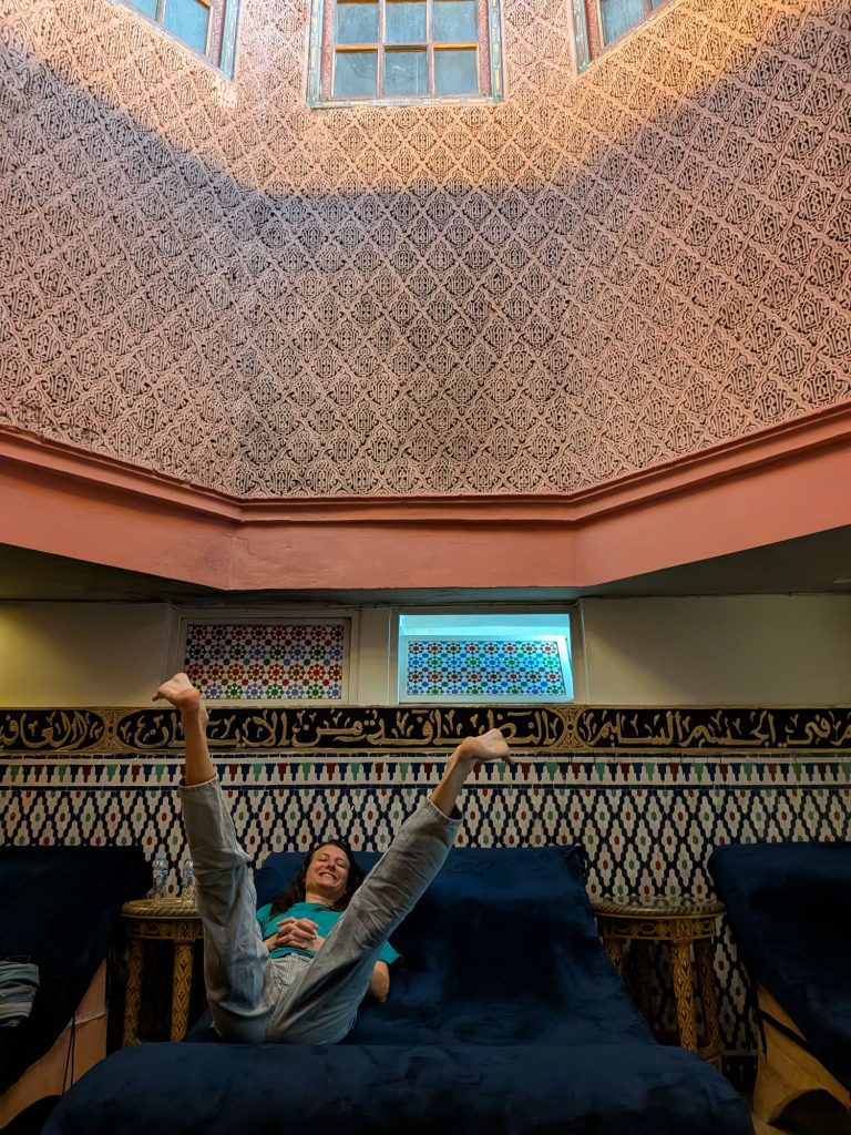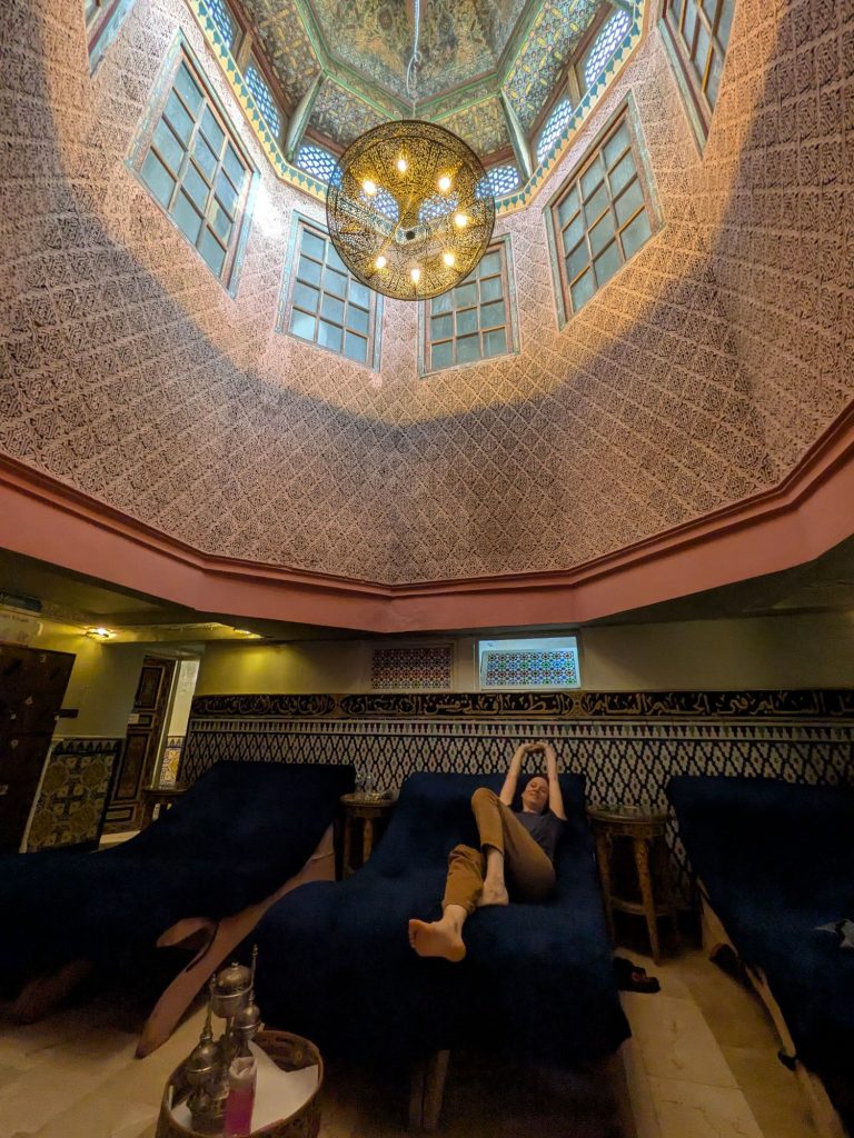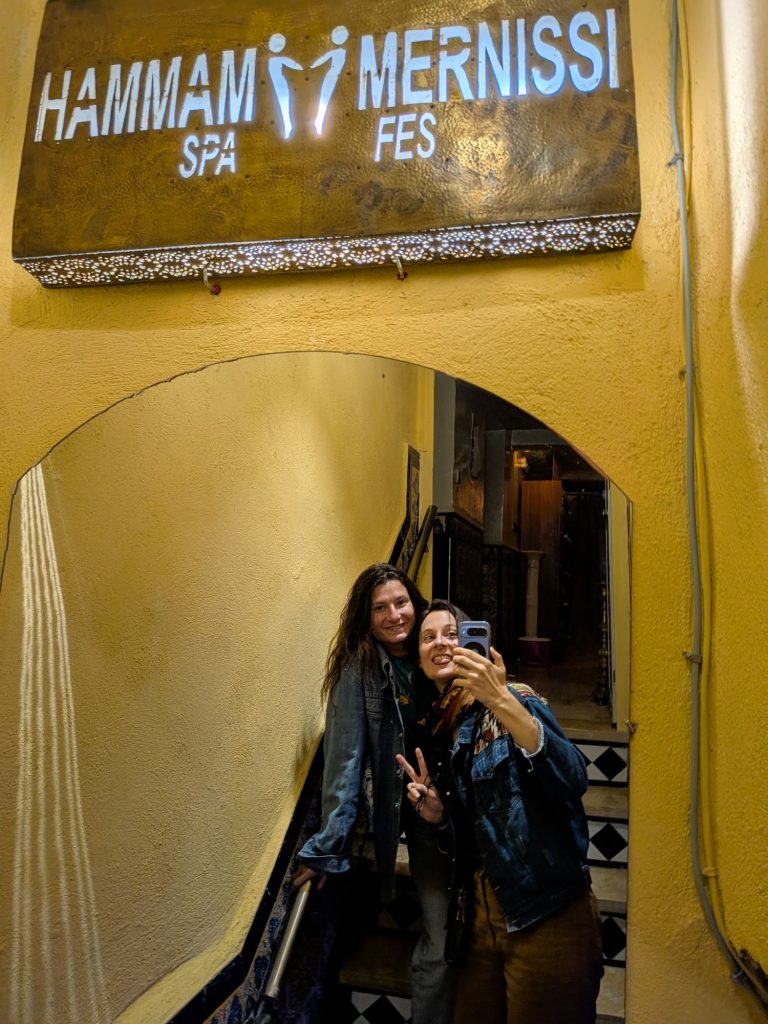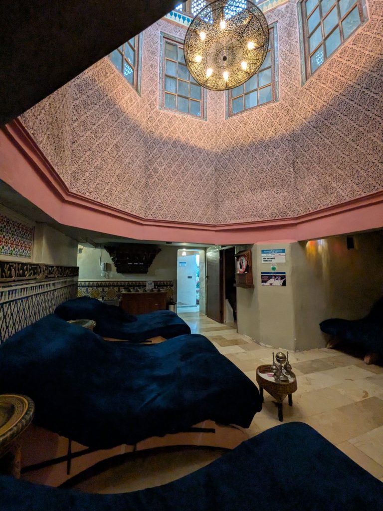 Pendant que nous attendions nos repas, Julie fait des recherches pour que l’on passe un moment dans un hammam sympa. Elle arrive à réserver dans un hammam dans la médina pour 15h.