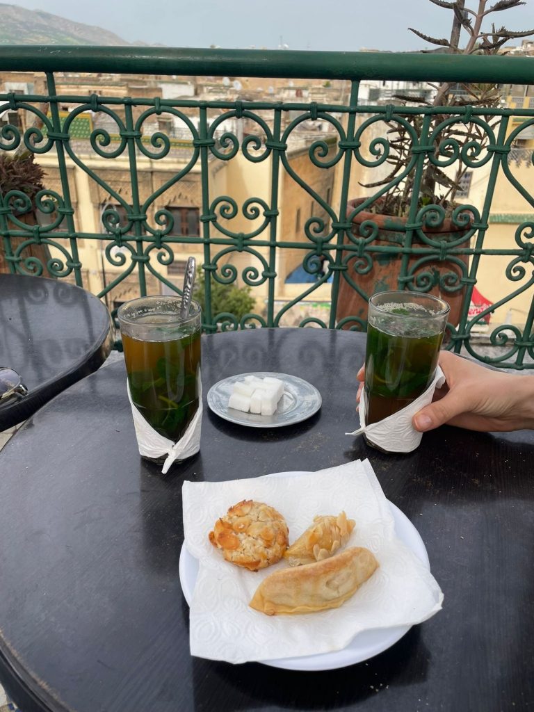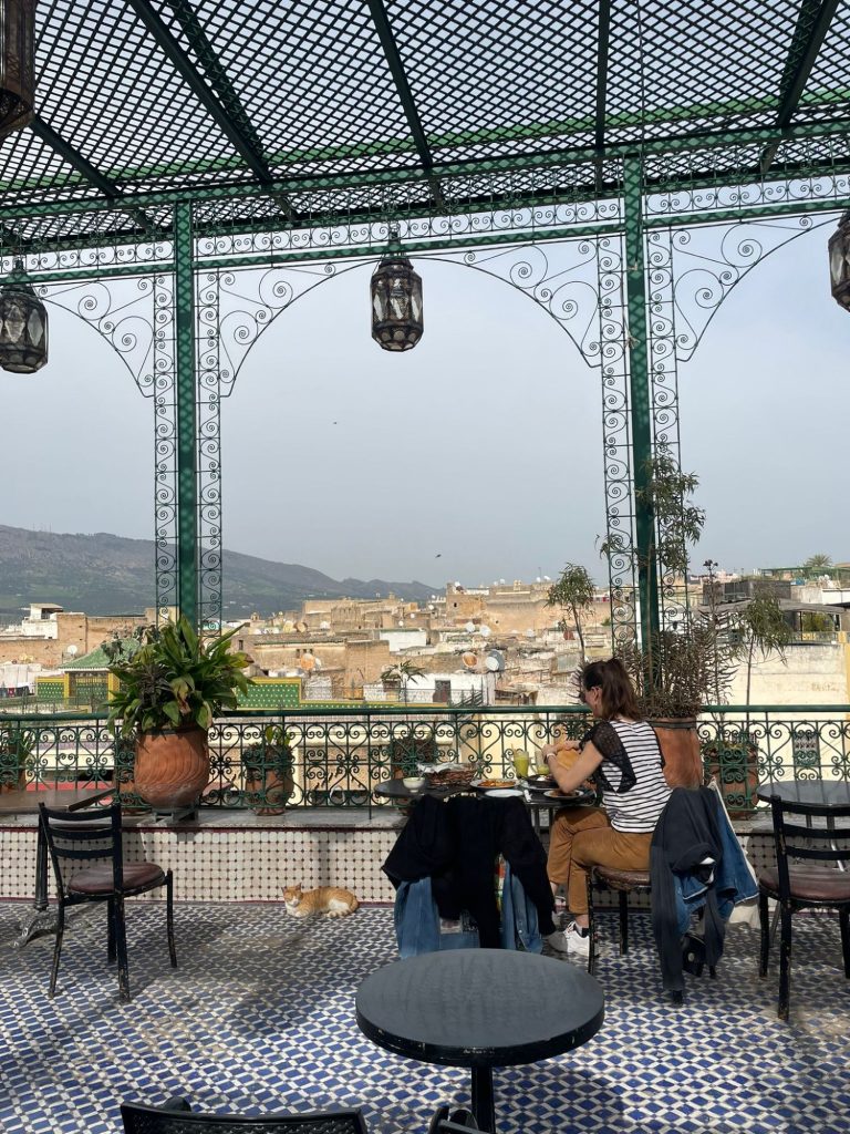 On termine la soirée par la prise de dessert sur le toit-terrasse du riad en papotant et en écrivant cet article de blog. Et oui, internet fonctionne beaucoup mieux sur le toit terrasse car dans la chambre il n’y a pas trop de réseau 🥹.