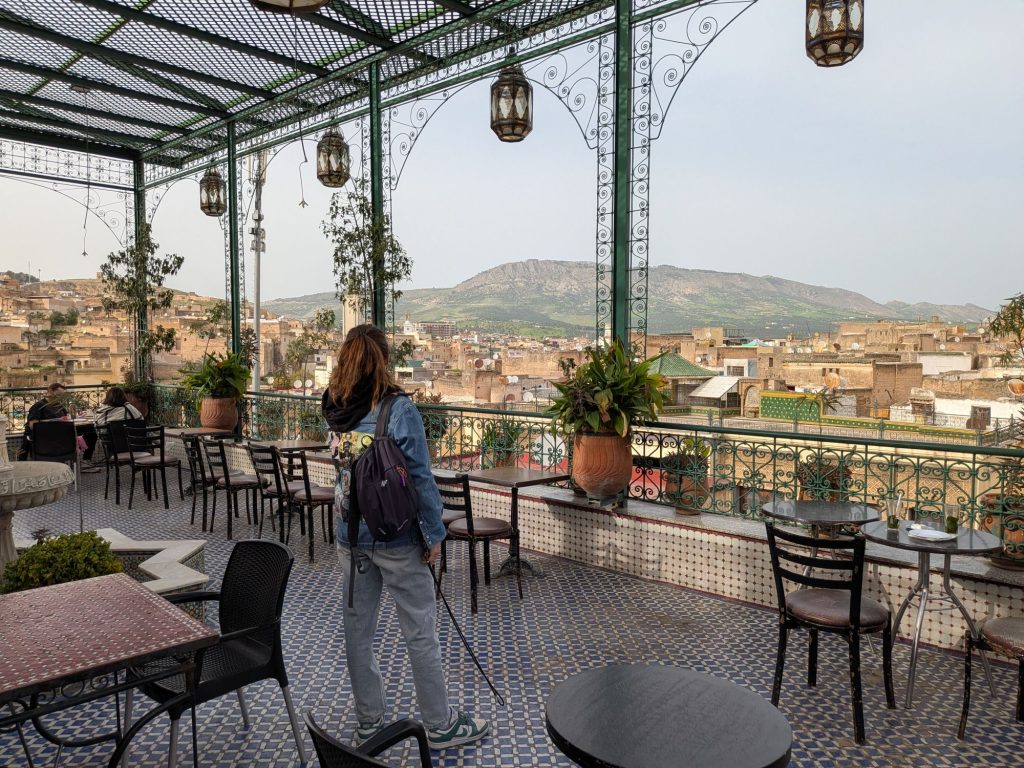 On a entraperçu l’intérieur de la mosquée et Université Al-Quaraouiyine, puis on l’a observée depuis un toit-terrasse.